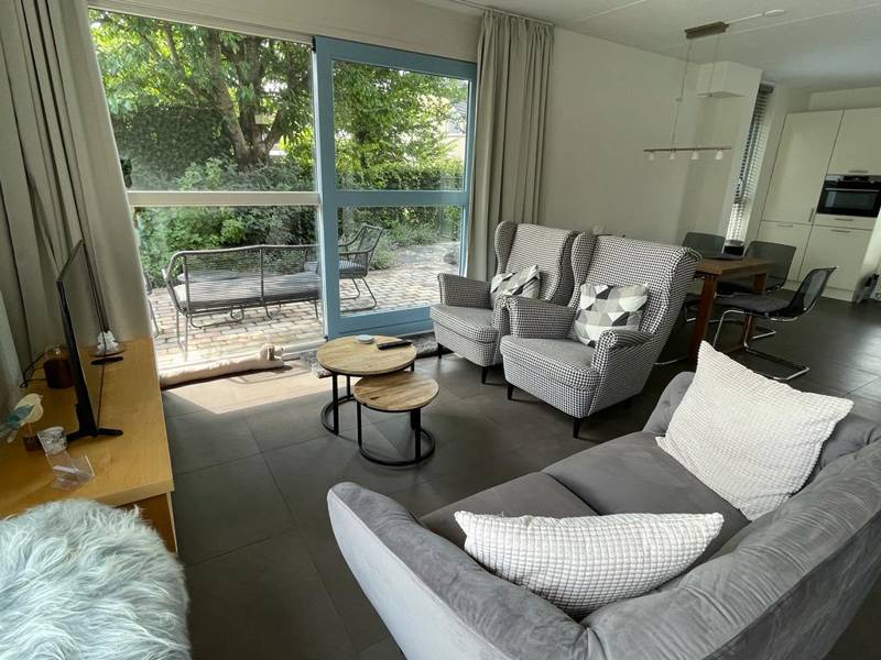 Binnen is het huis licht en praktisch ingericht. De woonkamer voelt huiselijk aan, en de keuken biedt alles wat je nodig hebt: van combimagnetron tot koffiezetapparaat en Senseo. Er zijn drie slaapkamers met in totaal vijf slaapplekken – perfect voor een gezin of een kleine groep vrienden. Dankzij de tegelvloer beneden en het laminaat boven blijft het fris en onderhoudsvriendelijk. En geen zorgen over muggen: de slaapkamers zijn voorzien van horren. Ook beneden vind je muggenhorren, zowel bij het keukenraam als bij de schuifdeur, waardoor je met een gerust hart frisse lucht binnenlaat.